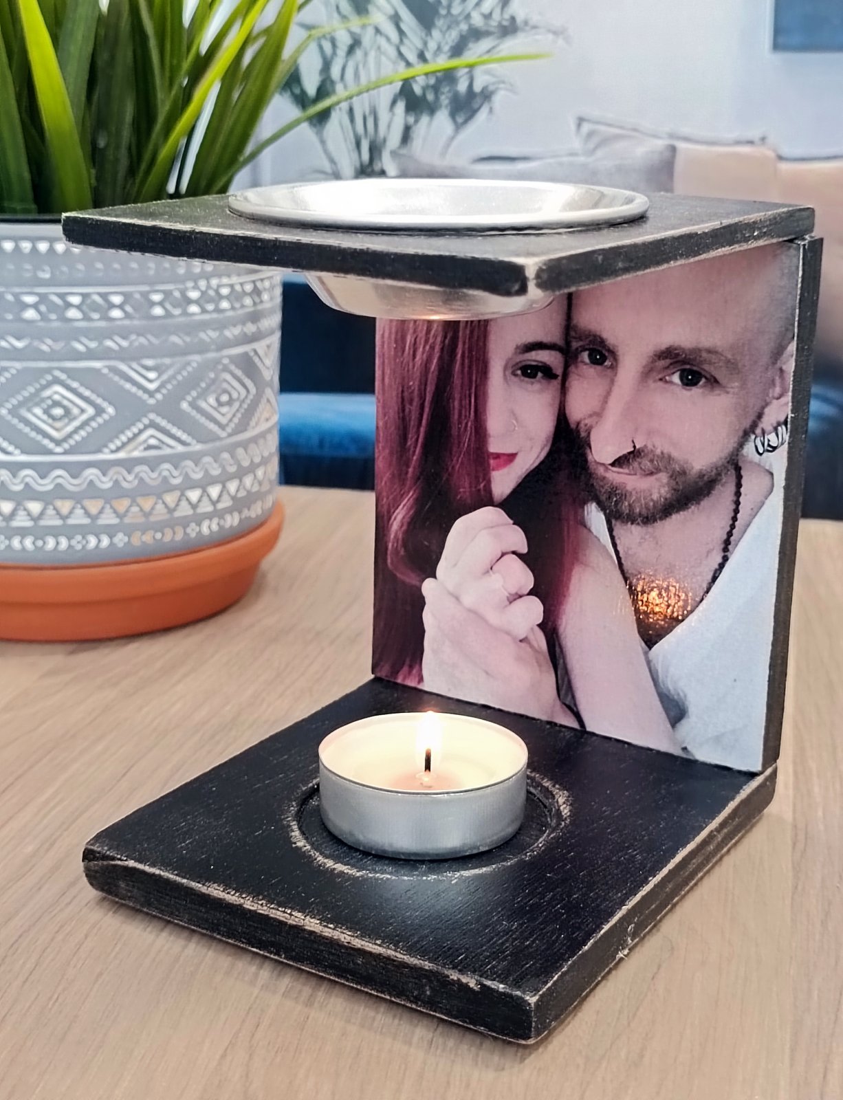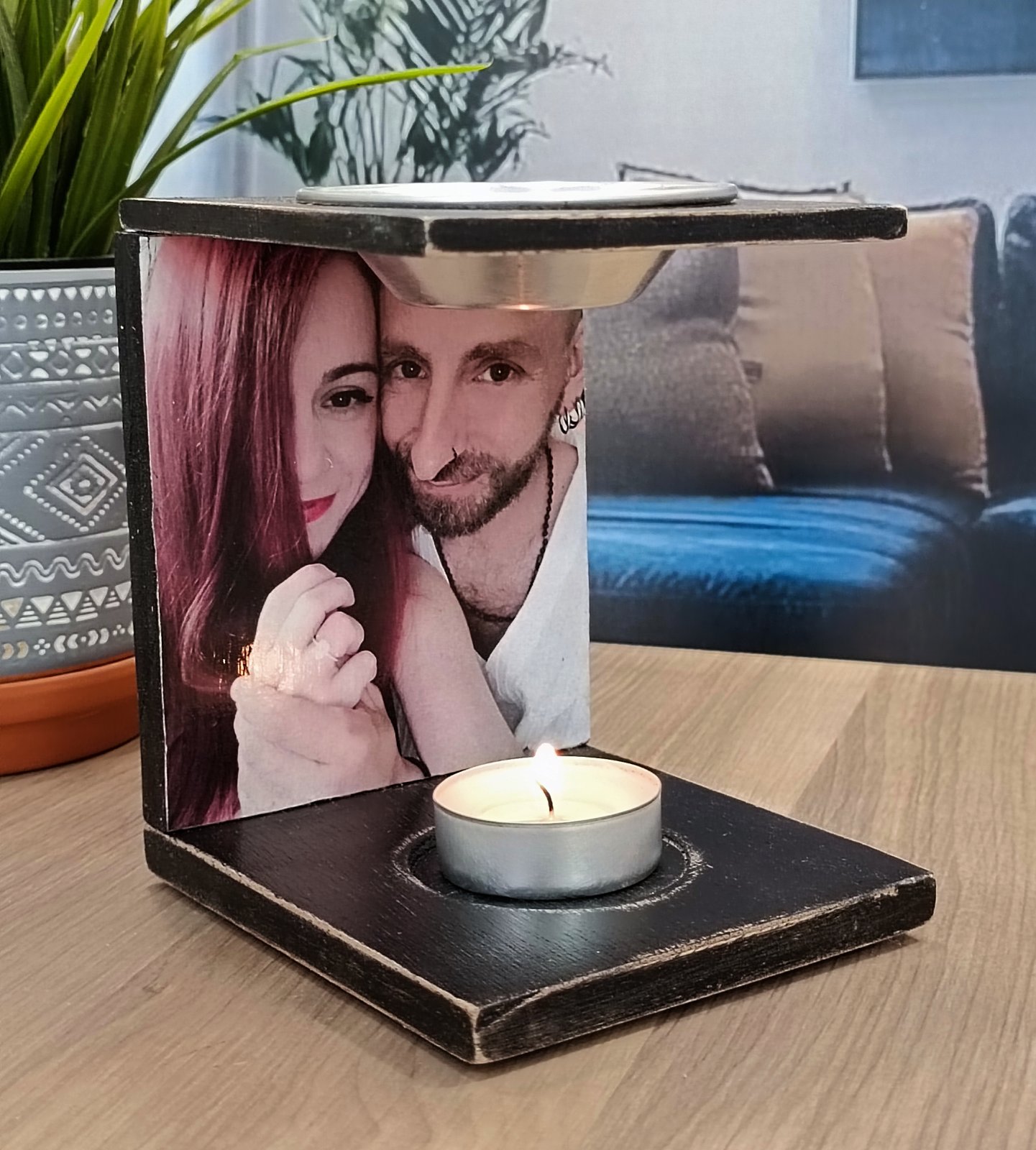 Ξύλινος αρωματιστής “Αρωματικές αναμνήσεις” για wax melts με φωτογραφία της επιλογή σας