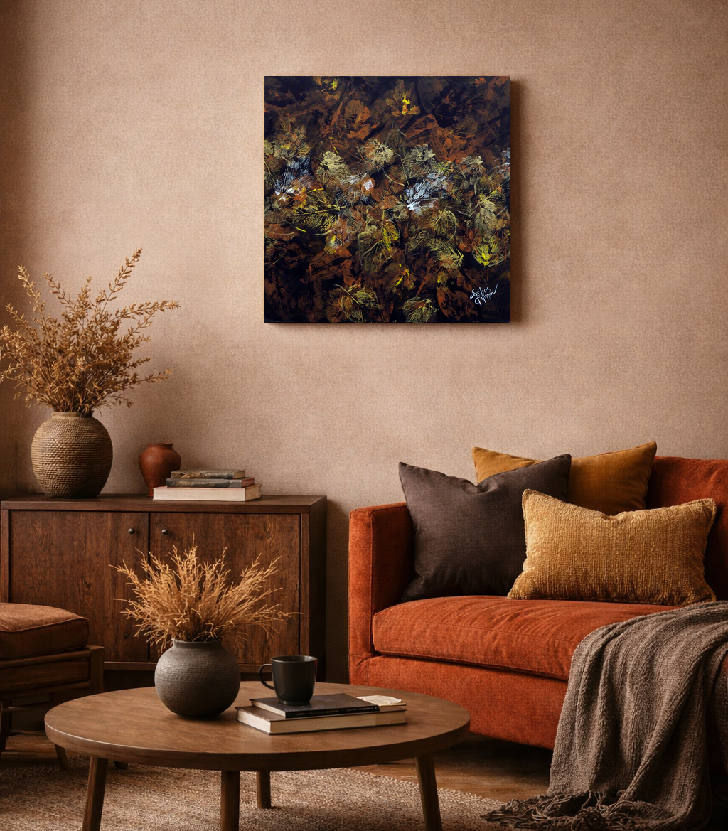Αυτός ο πίνακας δημιουργήθηκε με ακρυλικά σε καμβά, αντλώντας έμπνευση από τις υφές, τα χρώματα και τη σιωπηλή κίνηση της φύσης.