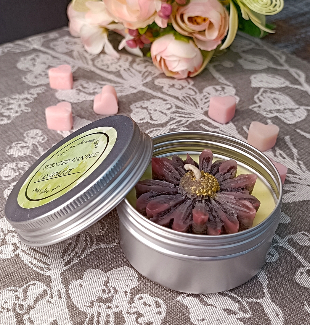 Αρωματικό κερί σε μεταλλικό κουτί με άρωμα καρύδα, μυρίζει υπέροχα και αλλάζει την ατμόσφαιρα στο σπίτι σας!