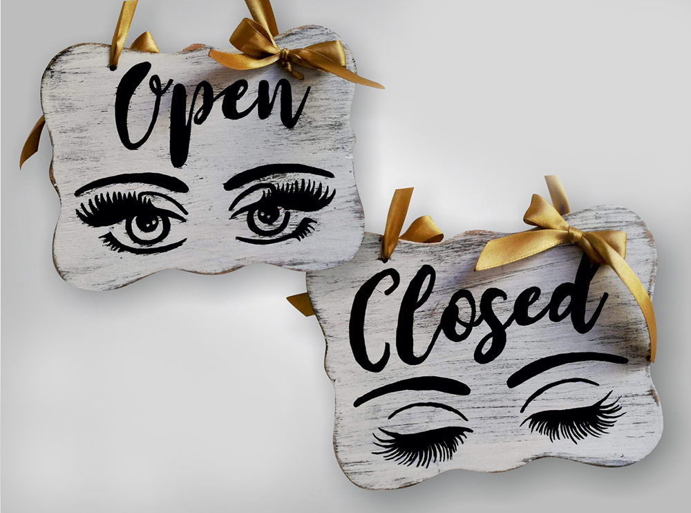 Open Close Eyes Ξύλινο χειροποίητο ανοιχτό-κλειστό “μάτια” κρεμαστό 2 όψεων για καταστήματα. Διάσταση 22x18cm