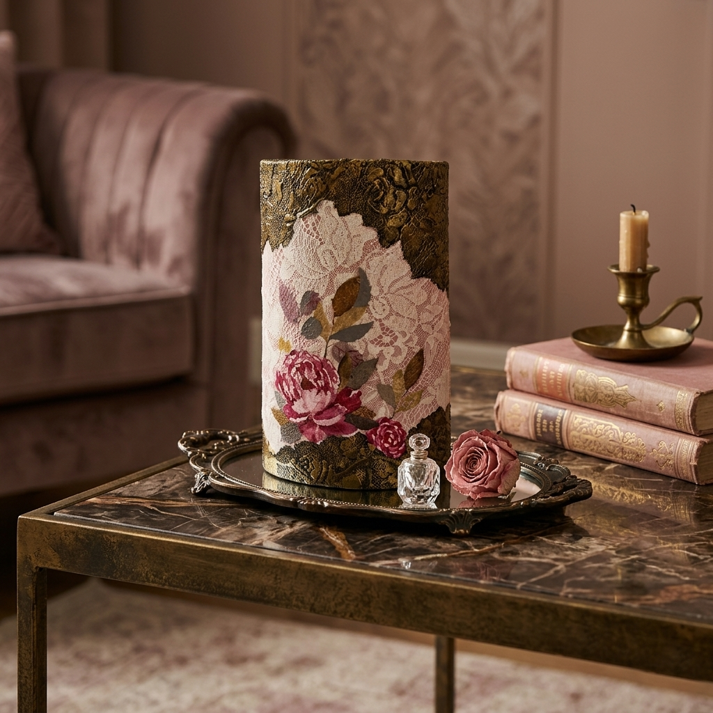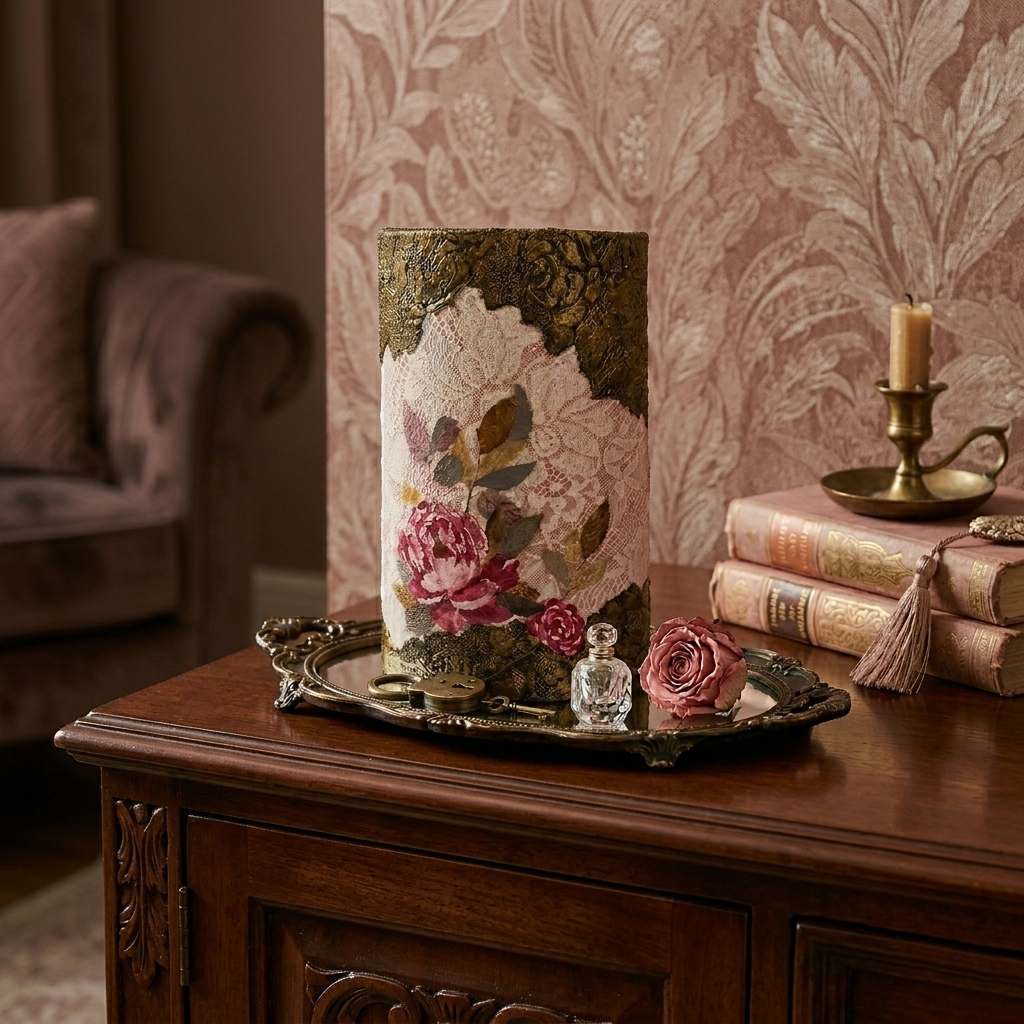 • Decoupage υψηλής ποιότητας: Με ένα εντυπωσιακό, ρεαλιστικό ροζ τριαντάφυλλο σε απαλό ροζ φόντο με μοτίβο δαντέλας.