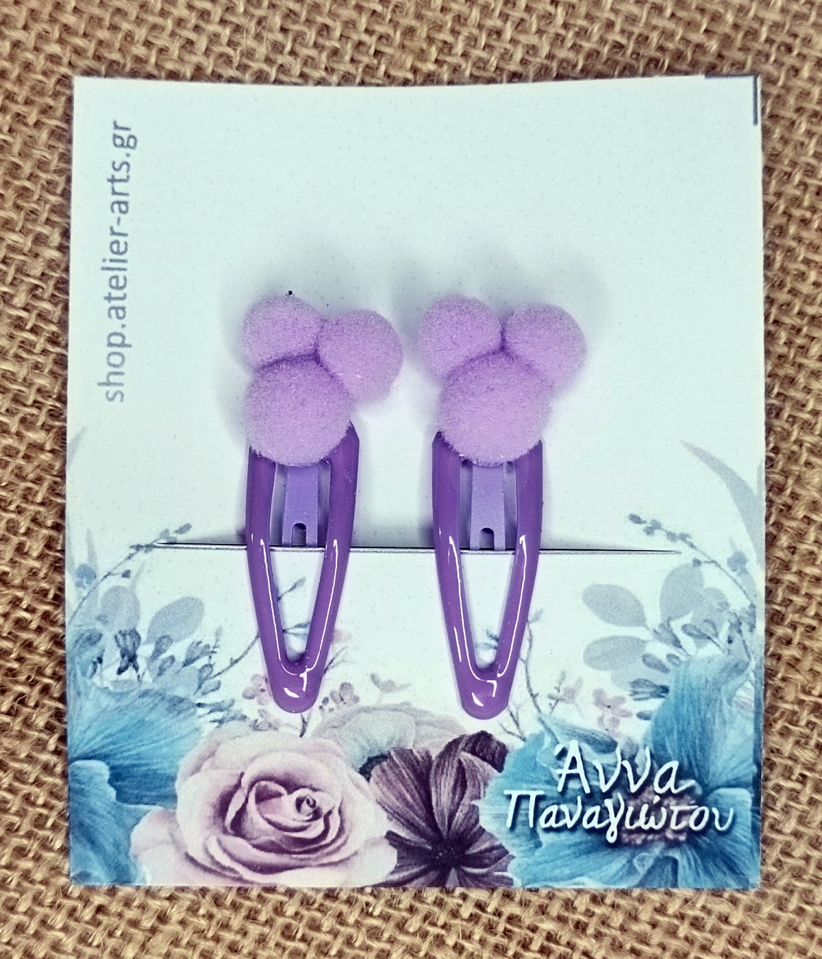 Σετ 2 Χειροποίητα Κλιπ Μαλλιών – Μωβ πομ πομ