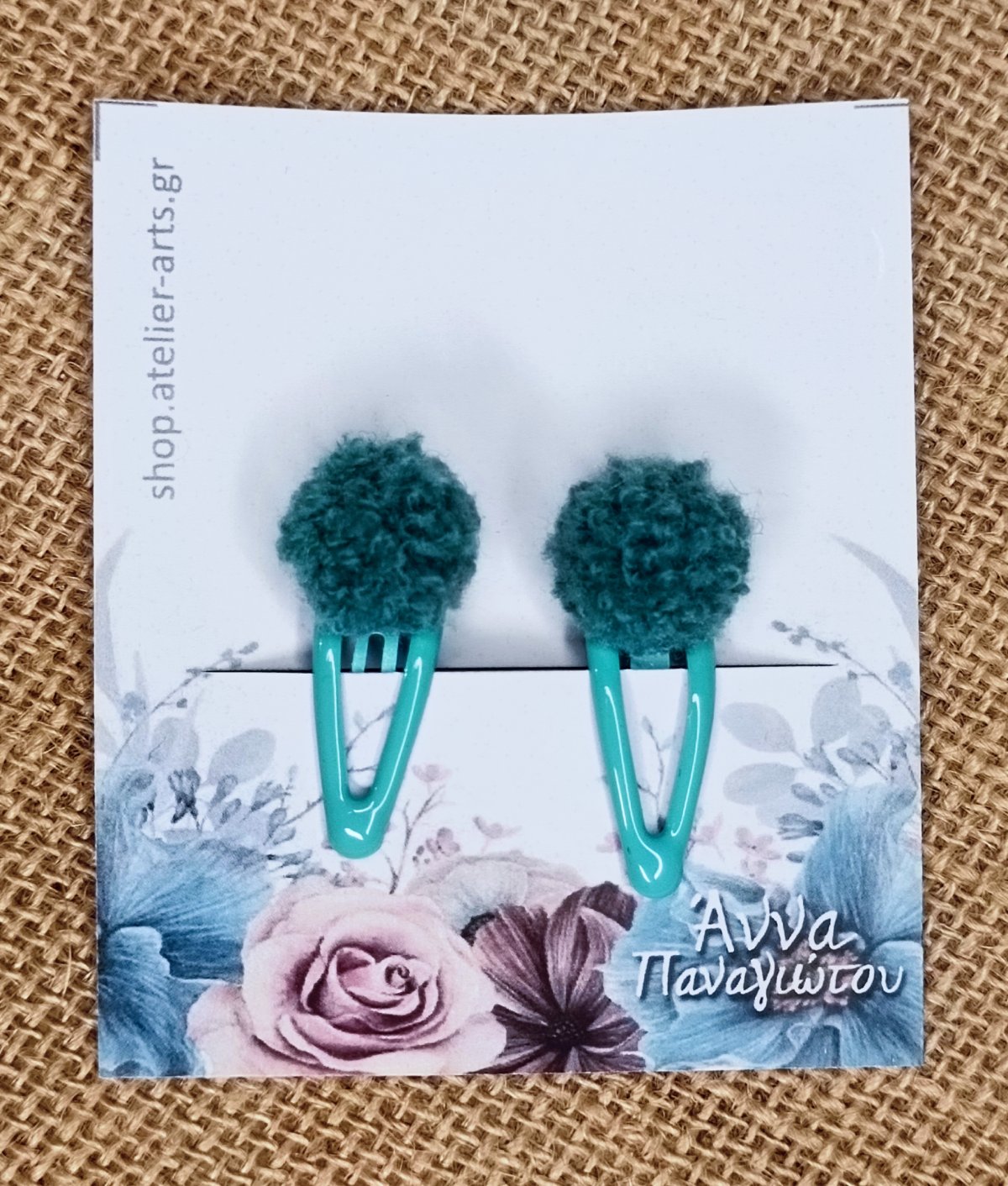 Σετ 2 Χειροποίητα Κλιπ Μαλλιών – Πράσινα πομ πομ