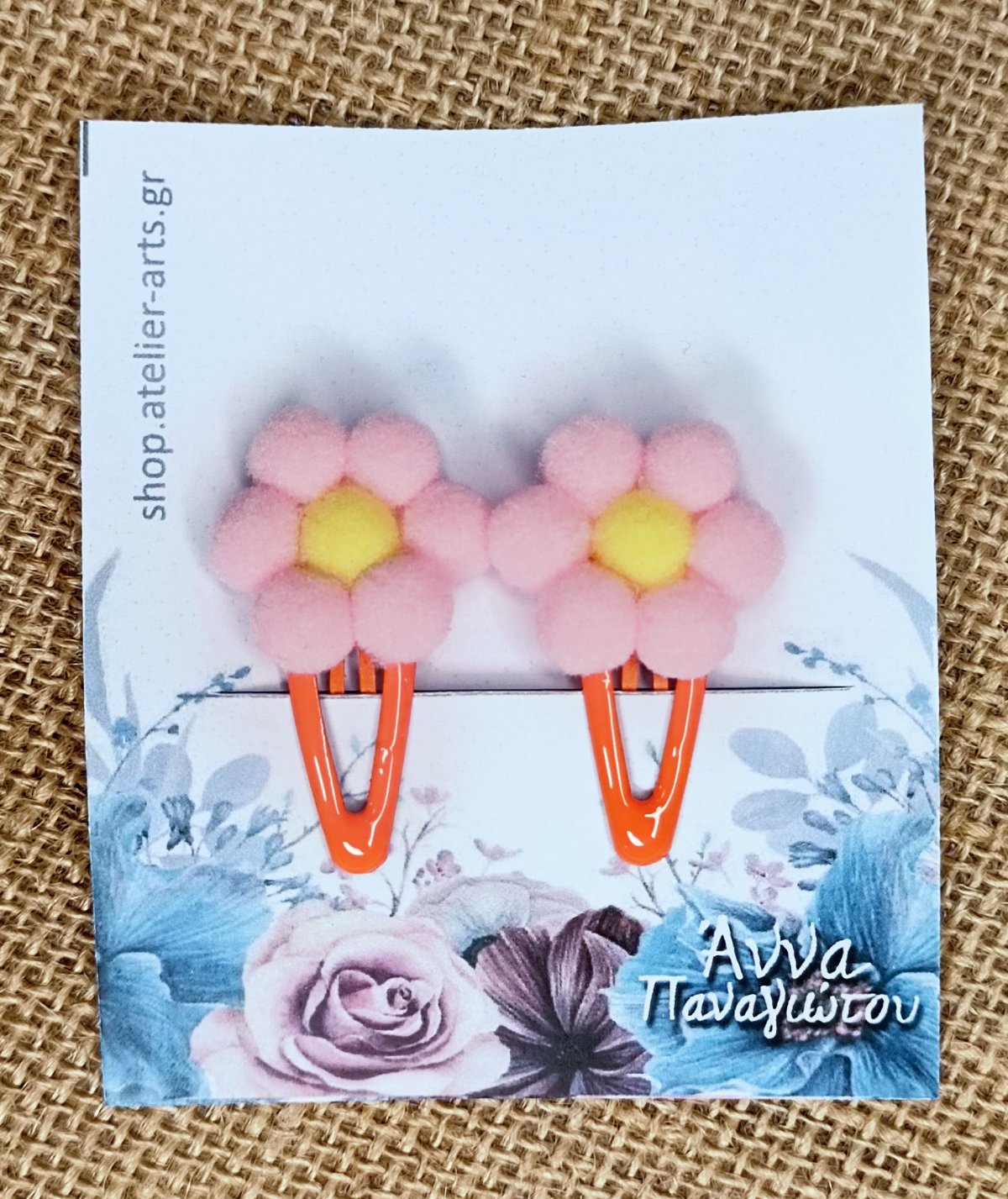 Σετ 2 Χειροποίητα Κλιπ Μαλλιών – Ροζ μαργαρίτες