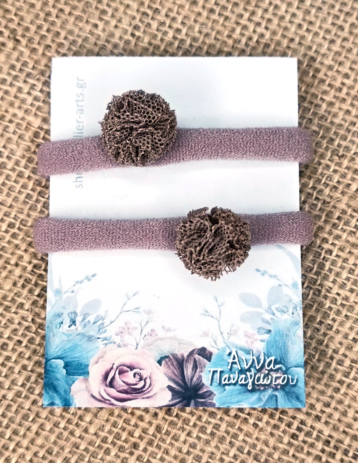 Σετ 2 Χειροποίητα Λαστιχάκια Μαλλιών – Καφέ πομπομ