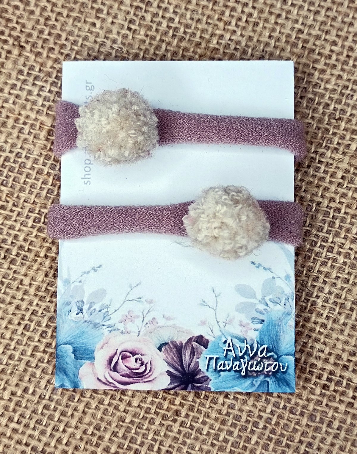 Σετ 2 Χειροποίητα Λαστιχάκια Μαλλιών – Λευκά πομπομ