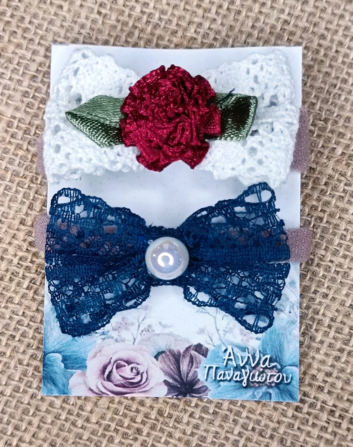 Σετ 2 Χειροποίητα Λαστιχάκια Μαλλιών – Λευκός φιόγκος & μπλε φιόγκος